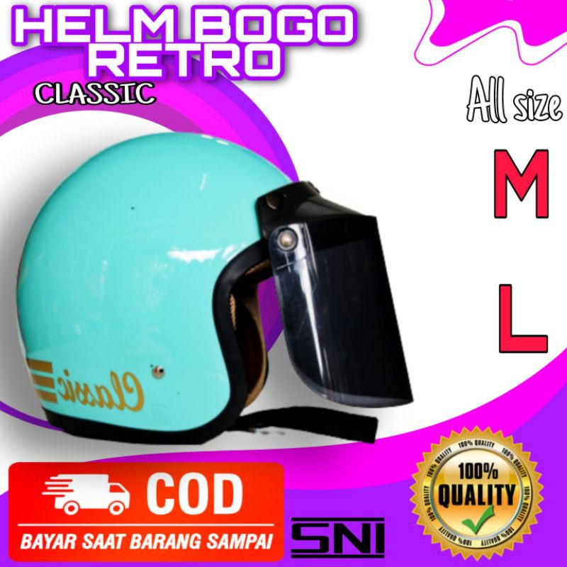 Harga helm helem bogo retro classic klasik wanita pria dewasa sni kaca datar.